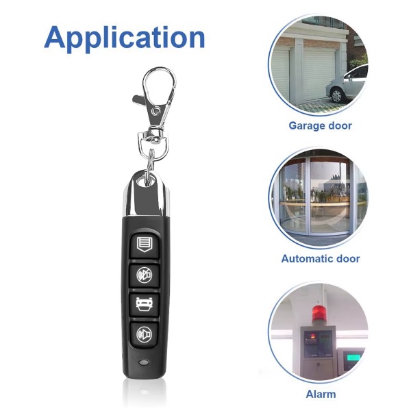 - Kopiranje: U levu ruku uzmite originalni daljinski upravljač, u desnu ruku naš duplikator i držite ih što bliže jedan drugom; pritisnite prva dugmad na oba daljinska upravljača istovremeno; za oko 2 sekunde LED lampica će brzo zatreperiti 2 puta; nakon jedne sekunde indikatorska lampica nastavlja da treperi, tada pustite prste; zatim pritisnite taster nakon uspešnog uparivanja, lampica ostaje upaljena, što znači da je kod prvog tastera sa originalnog upravljača kopiran na drugi; ista metoda se koristi redom za drugi taster, treći taster… Ako je kopiranje uspešno, funkcija daljinskog upravljača je ista kao i kod originalnog.