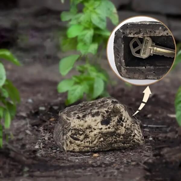 Ovaj držač za ključeve u obliku kamena savršeno se uklapa u spoljašnje prostore, osiguravajući da vaš ključ ostane siguran i skriven.