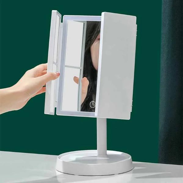🔍 Jasno vidite svaki detalj – ugrađeni paneli sa uveličanjem od 2x i 3x za precizno nanošenje ajlajnera, oblikovanje obrva i trepavica.