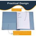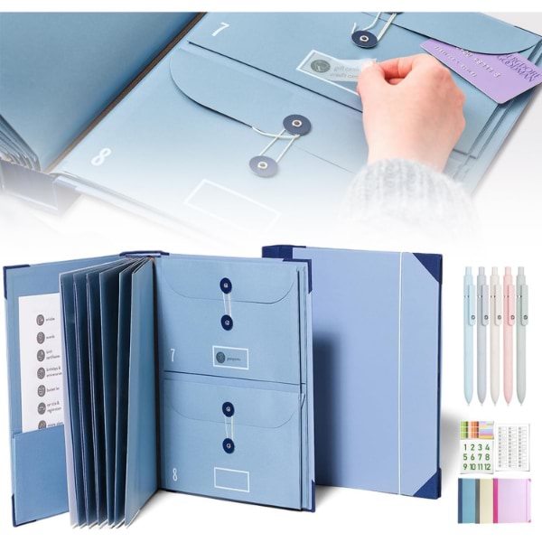 Uključuje 10 proširivih koverti (6 veličine A4, 4 polovine A4) koje mogu da drže do 10 listova svaka.